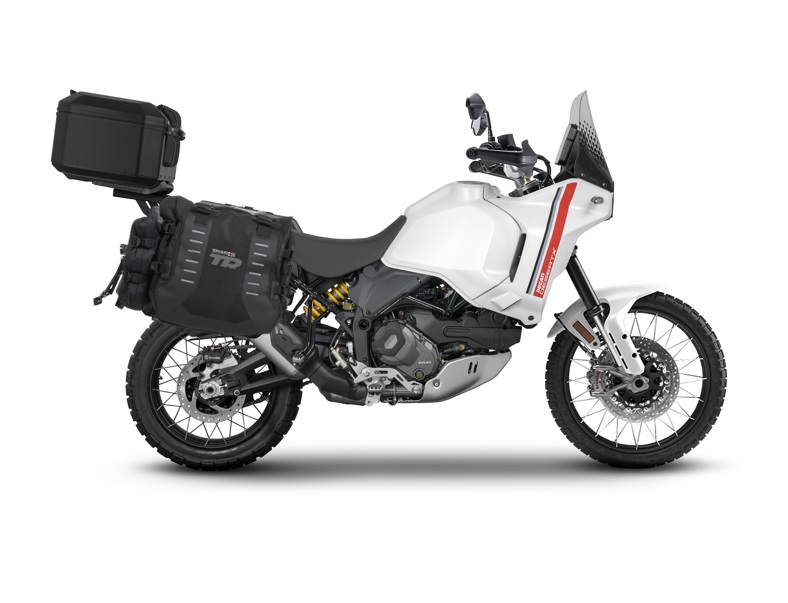 - SHAD Kompletná sada sedlových brašní TERRA TR40 adventure a hliníkového kufra SHAD TERRA TR55 PURE BLACK, vrátane montážnej sady DUCATI DESERT X